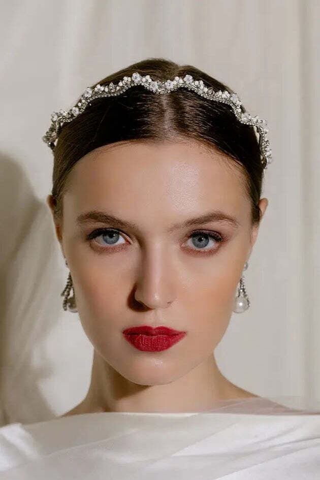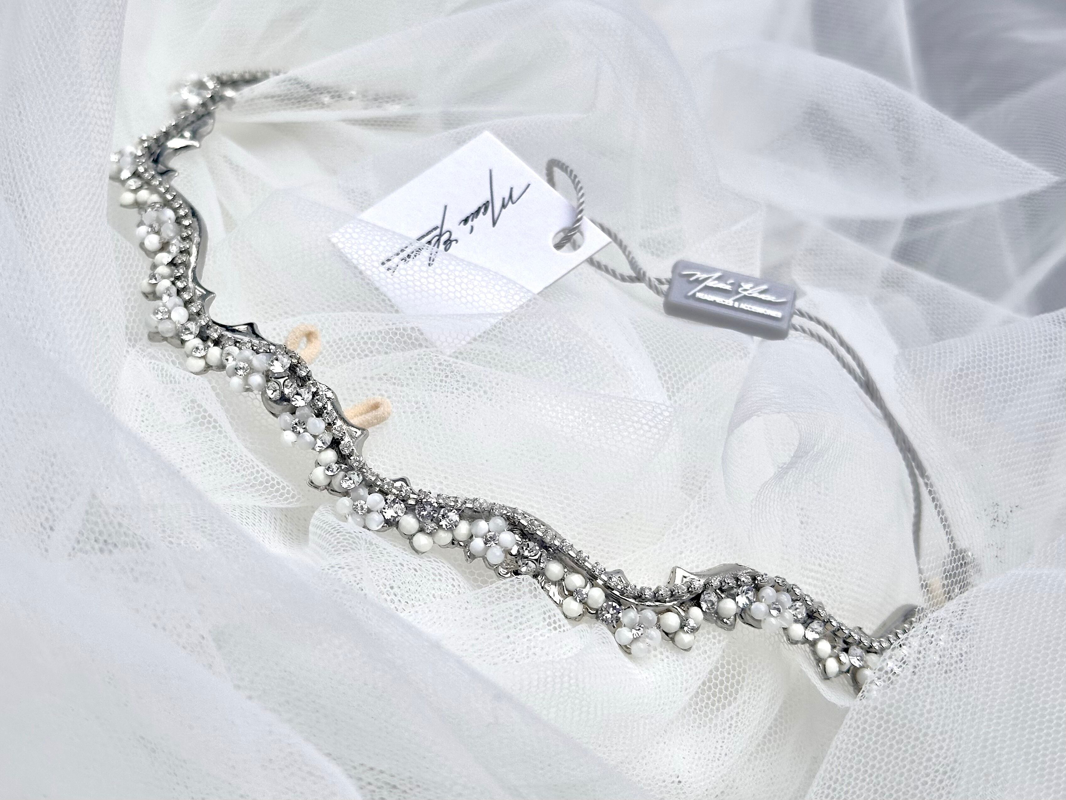 Clear crystals, petite mother of pearl flowers,